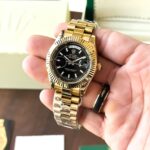 Introducing the Rolex Day-Date Black Dial first copy watch from the 7AA Premium Collection. This timepiece is not just about telling time; it’s about making a statement. Featuring a 41mm stainless steel case, it’s a perfect blend of style and functionality. The dial, adorned with striking black and green elements, is designed to catch the eye and elevate any outfit.