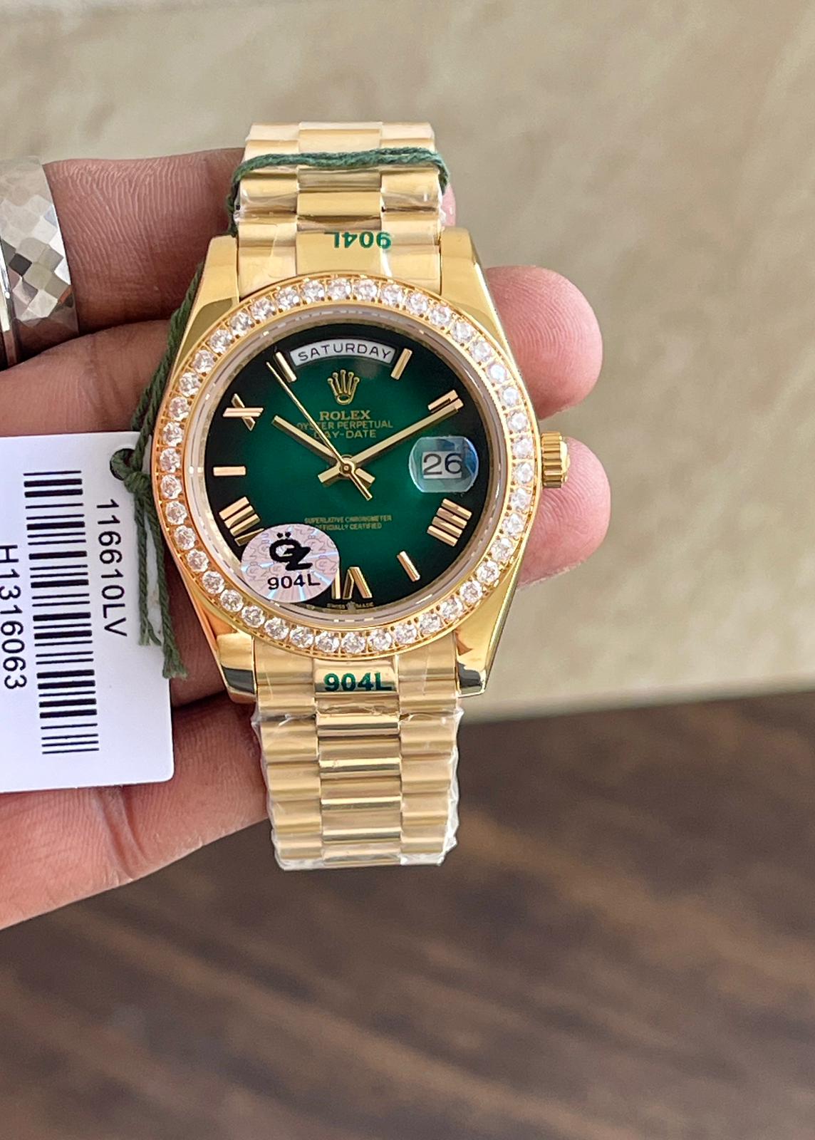 • Rolex Day-Date Green Diamond Bezel – First Copy (7AAA Premium Quality)