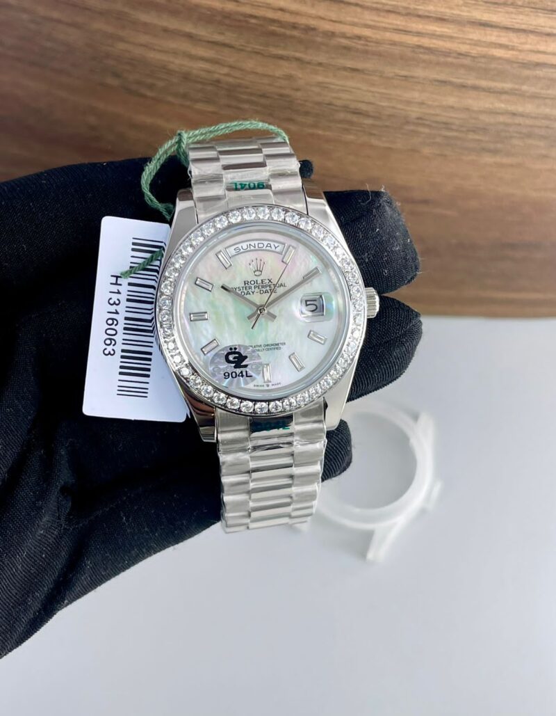 - Rolex Day-Date White Diamond Bezel – First Copy (7AAA Premium Quality)