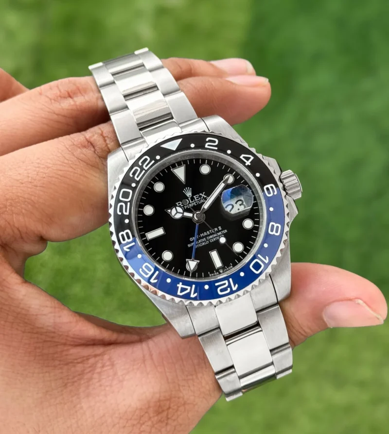 Discover the Rolex GMT Master 2 Batman first copy watch, blending style and functionality with a striking design, perfect for every occasion.