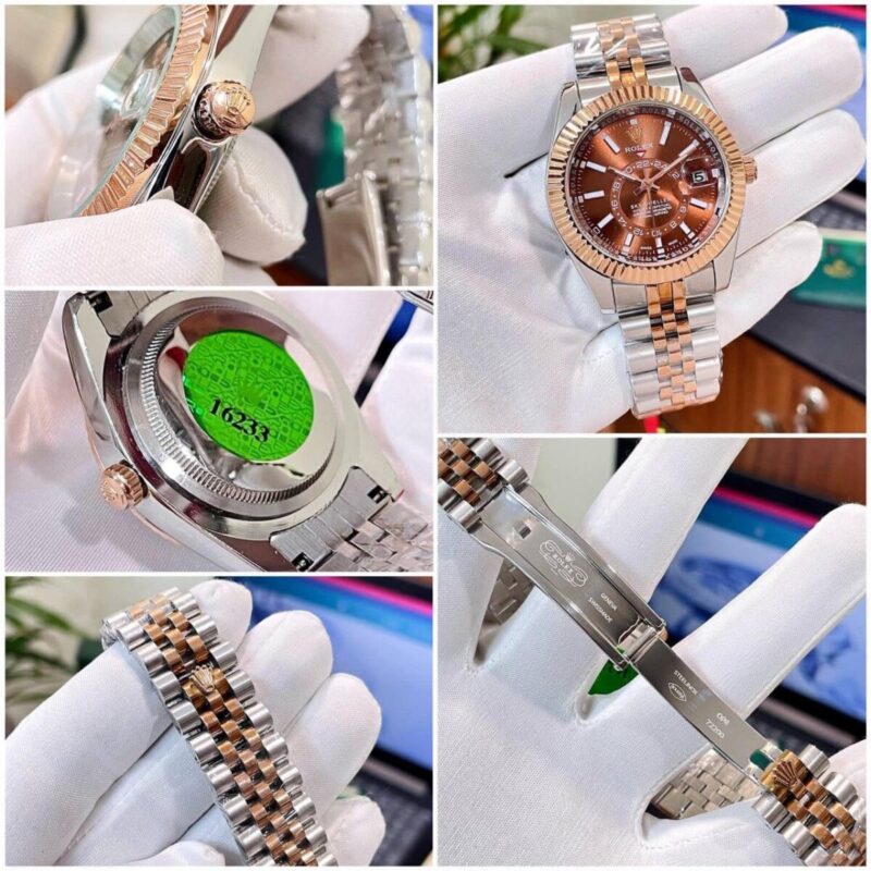 The Rolex Sky-Dweller 38 Brown Dial First Copy Watch is designed for those who appreciate precision and style. With its classic 38mm stainless steel case, this timepiece showcases an elegant brown dial complemented by a striking copper bezel that adds a touch of sophistication to any outfit.